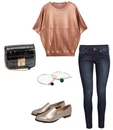 Bluzka COS, jeansy H&M, torebka, H&M, bransoletki mango, buty Zara